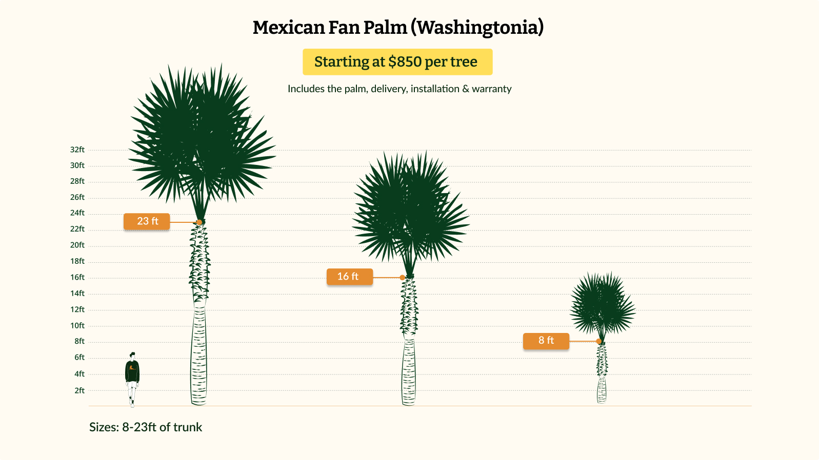 Mexican Fan Palms grow up to 70-100 feet.